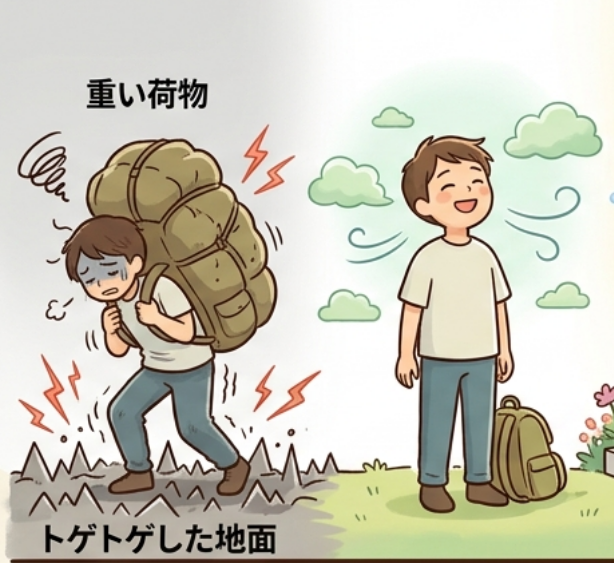 本人が環境(重い荷物やトゲトゲの地面)によって感じている「ストレス」を指します。