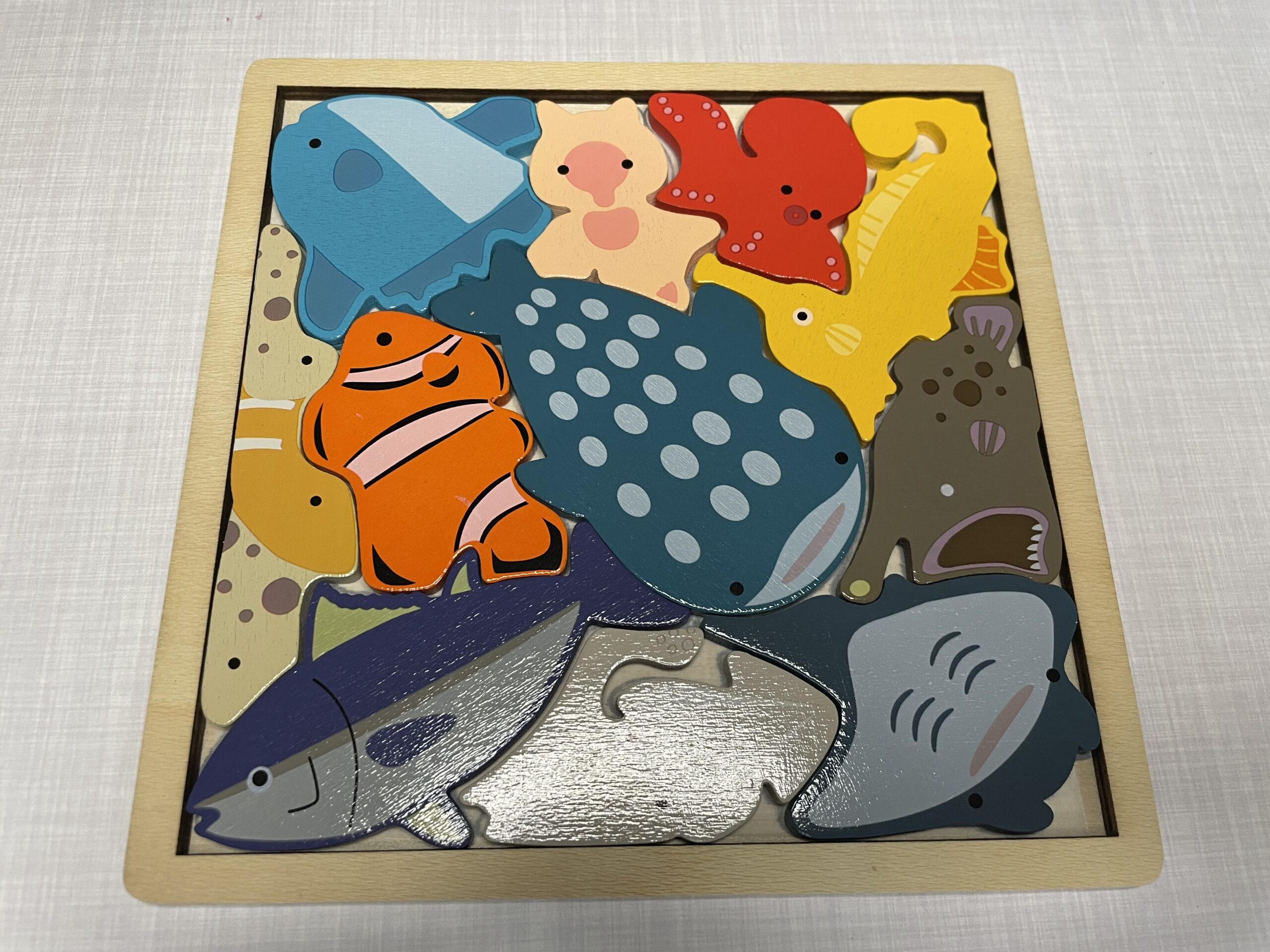 2歳のクリスマスプレゼントでエド・インターのお魚2層パズルをもらった。一時期、夢中で毎日やっていた。