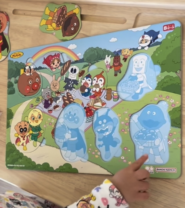 ・パズルを見てカレーパンマンを指差し、「あんまんまん!(アンパンマン)」と言っていた。