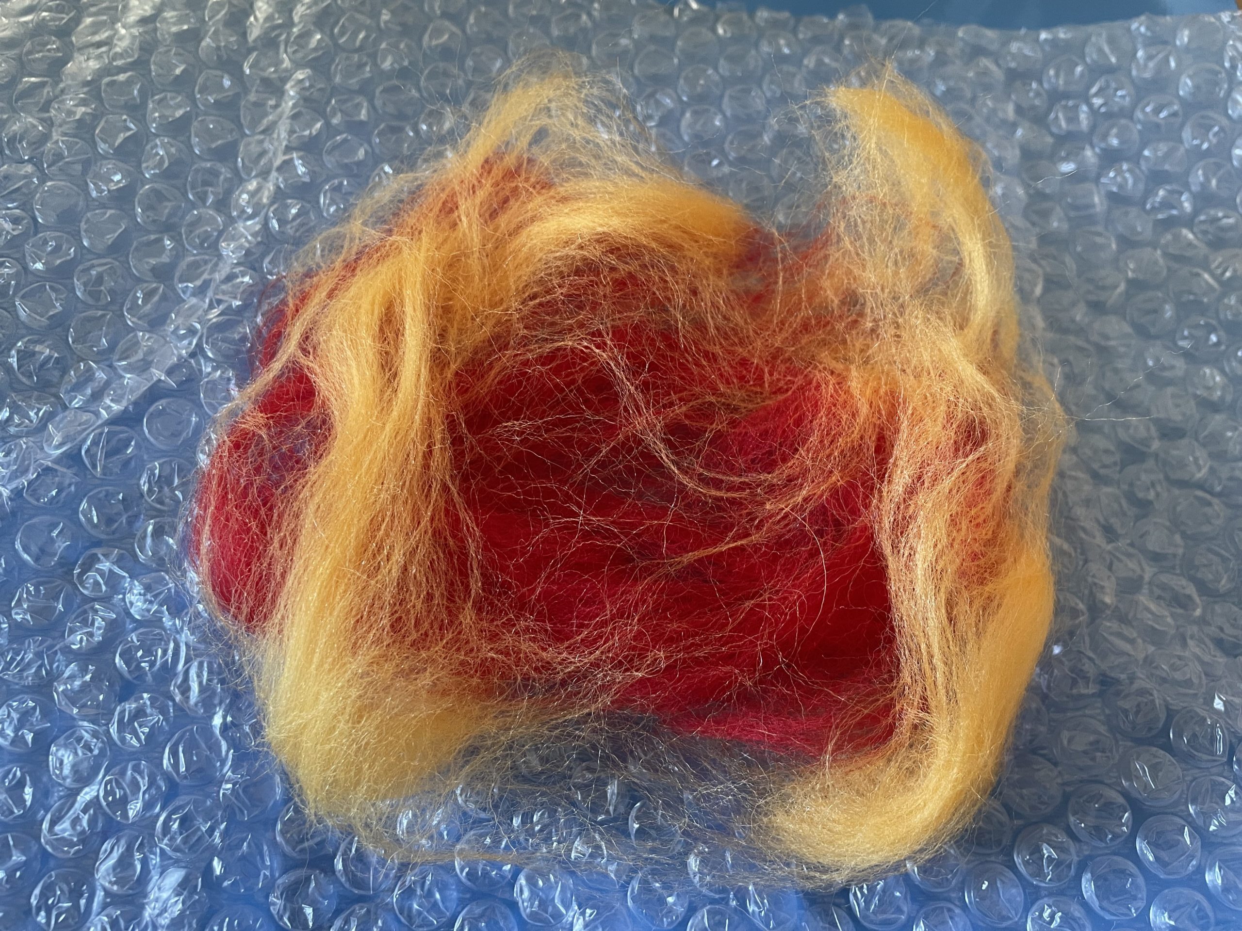 プチプチを作業台に敷き、その上に羊毛をふんわり広げます。