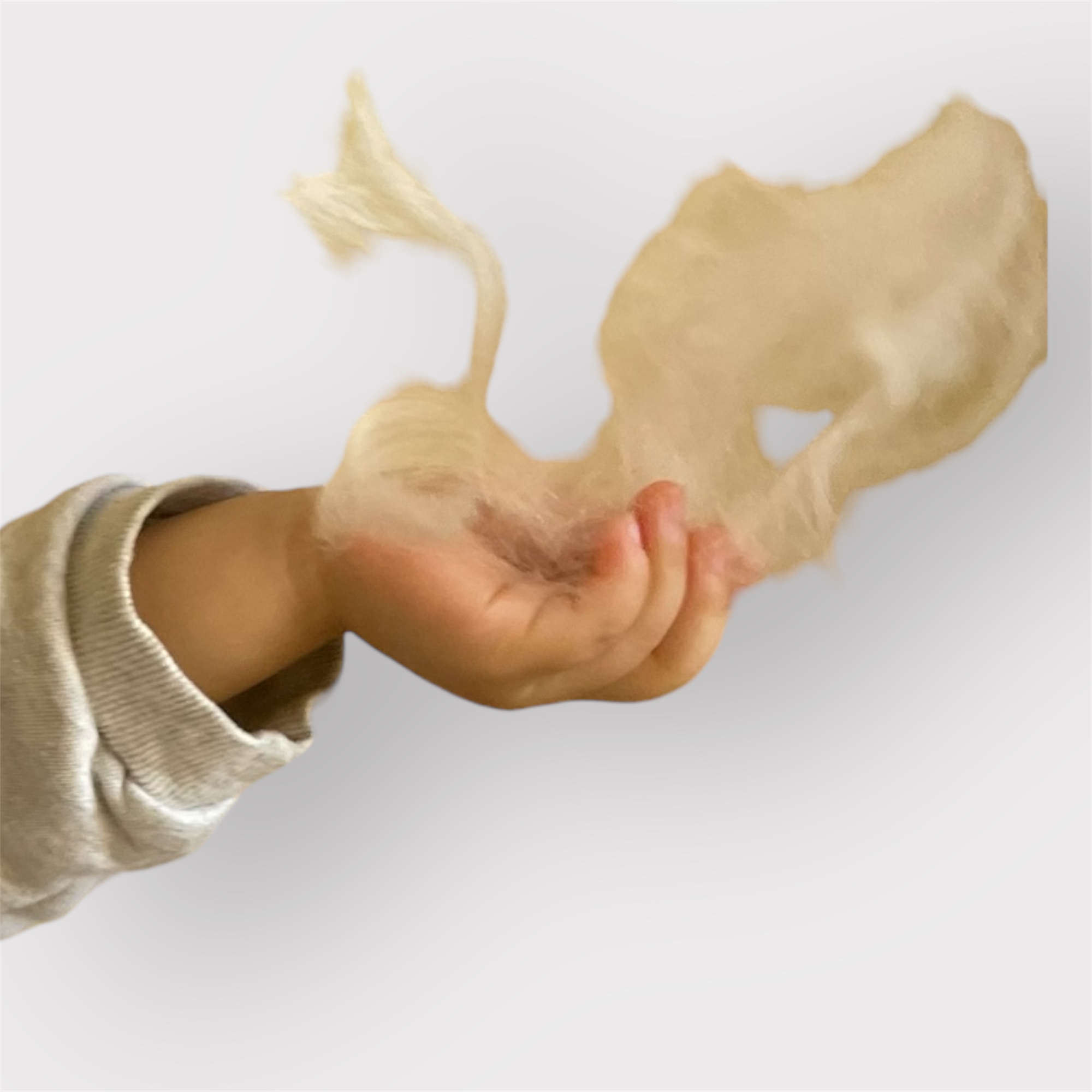 - 触覚:ふわふわ → ぬるぬる(石鹸)→ ぎゅっと固まるフェルトの変化を手で感じられる。